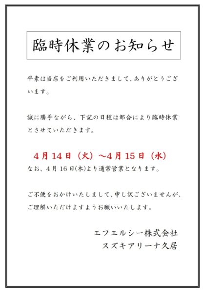 休業中にいただいたお問い合わせにつきましては4月16日以降順次対応させていただきます。