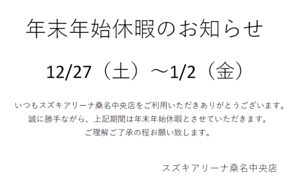 来年もスズキアリーナ桑名中央店をよろしくお願いいたします。